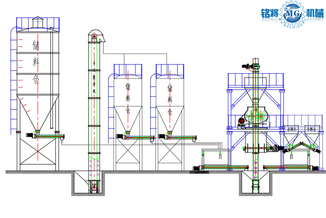 該生產(chǎn)線,是我公司自主研發(fā)的用于生產(chǎn)灌漿料、預(yù)應(yīng)力管道壓漿料、特種砂漿等超細(xì)粉物料混合的專用設(shè)備。主要用于直徑小于300目的骨料砂漿的生產(chǎn)。由原料儲料罐、螺旋輸送機(jī)、骨料自動計(jì)量系統(tǒng)、添加劑自動計(jì)量系統(tǒng)、斗式提升機(jī)、預(yù)混倉、無重力混合機(jī)、成品倉、自動包裝機(jī)、除塵系統(tǒng)、鋼架平臺、控制系統(tǒng)等組成。 可生產(chǎn)年產(chǎn)5萬噸、10萬噸、20萬噸、30萬噸產(chǎn)量設(shè)備,也可根據(jù)客戶的需求定制。