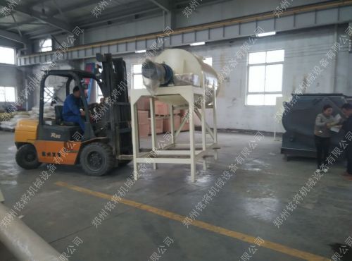 用在全自動干粉砂漿生產線上的雙軸無重力混合機已經組裝完畢,只等噴漆了。