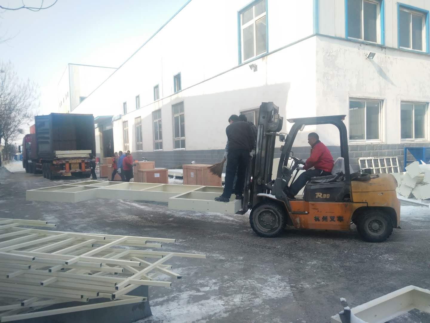 這場雪持續(xù)一天一夜,整裝待發(fā)的設備上蓋著厚厚的一層雪,為了不耽誤客戶的工期,正常發(fā)貨,一大清早銘將全體員工集體出動,清掃設備上的雪,大家不怕嚴寒,始終飽含工作熱情和高昂的斗志,有力的為塞爾維亞的正常發(fā)貨做好準備。